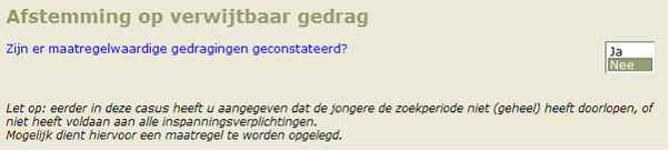 Via melding 2244561 in release Q4.1 is het mogelijk om aan te geven aan welke verplichtingen de jongere tijdens zoektijd niet heeft voldaan.